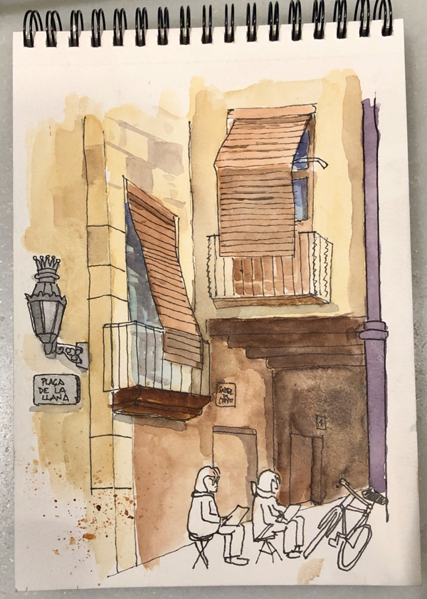 Illustration: Urban Sketchers in Barcelona (J. Ustrell, 2020)